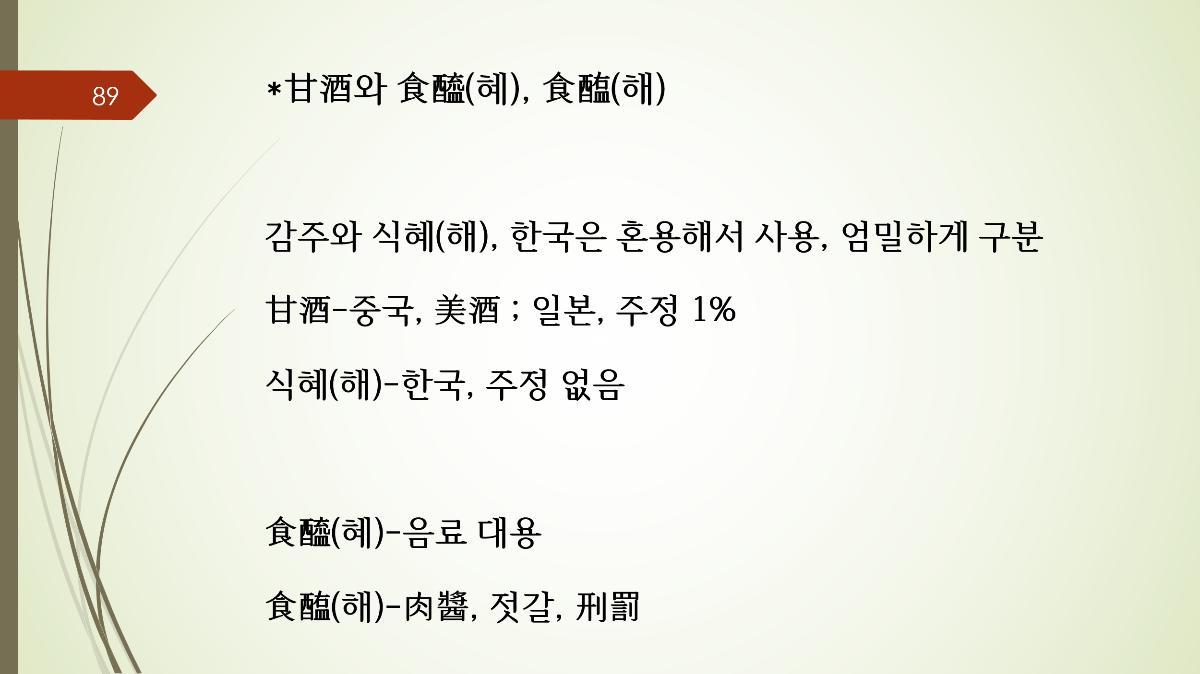鄭玄 注..「今文禮作醴」 현재의 예경에는 작 예로 되어 있다.'"(단술 예) 또 《儀禮》〈士昏禮〉「如初禮」 "초례와 같다" 鄭玄 注.「古文禮爲醴」 고문서의 예는 단술이라 했다."