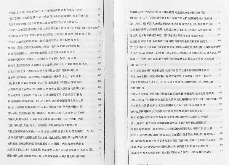 ▼ "왕오천축국전"이 3권(상, 중, 하)이라는 근거는 당나라 승려 혜림(慧琳, 737~820)이 쓴 불교 경전에 나오는 어휘의 음과 뜻을 설명한 불교 용어 사전인 일체경음의(一切經音意)에 나온다.