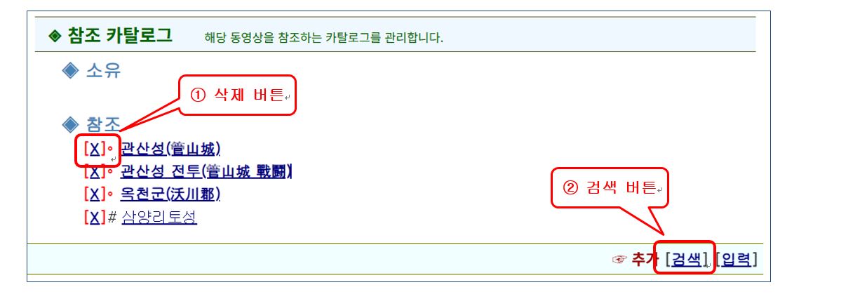 2, 정확한 카탈로그 검색/추가 (권장) - 이때 중복된 키워드를 확인하거나 정확한 카탈로그를 찾으려면 1) "검색" 버튼을 클릭하여 "카탈로그 찾기" 화면을 엽니다. 2) 검색 기능을 이용하여 해당 영상과 가장 정확하게 연관된 지식지도를 찾아 선택하고 추가합니다.