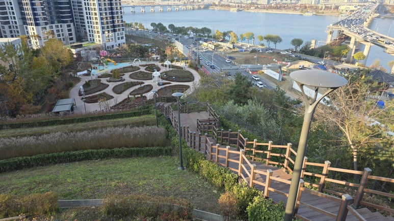 ▣ 삼성 해맞이 공원 정보 1. 지하철 7호선 청담역 1번 출구에서 도보 10분 거리(약 400m) 2. 2022년 공원 조성 원래 상수원을 공급하기 위한 시설이었다가 폐쇄 예정이던 배수지 상부를 공원으로 조성한 뒤 2022년 시민들에게 개방하였다.( 22,598㎡ 규모로 아래공원과 계단으로 연결됨)