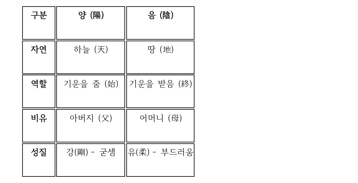 - 구절 풀이: 이음승천모도야(以陰承天母道也) "음으로써 하늘의 뜻을 이어받으니 이는 어머니의 도이다." • 승천(承天): 음은 땅(坤)의 기운을 상징합니다. 하늘(양)이 뿌린 생명의 씨앗을 받아들여 실제로 길러내고 완성하는 역할을 합니다. '하늘을 받든다'는 것은 양의 기운과 조화를 이루어 실질적인 형체를 만든다는 뜻입니다. • 모도(母道): 어머니가 아이를 잉태하고 보살펴 키우듯, 음은 포용하고 양육하여 생명을 현실화합니다. • 특성: 유순함(順), 고요함(靜), 어두움(暗), 수렴하고 갈무리하는 힘을 상징합니다.