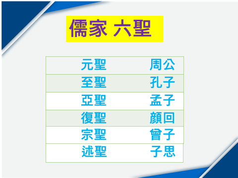* 선왕 ~ 요, 순, 우, 탕왕 문왕, 무왕, (주공) * 선군 ~ 1) 선왕 2) 제후국 군주 * 선현 ~ 성인 밑의 12철 * 성현 ~ 유가 6육성 중 일찍 죽은 복성을 제외한 5명임