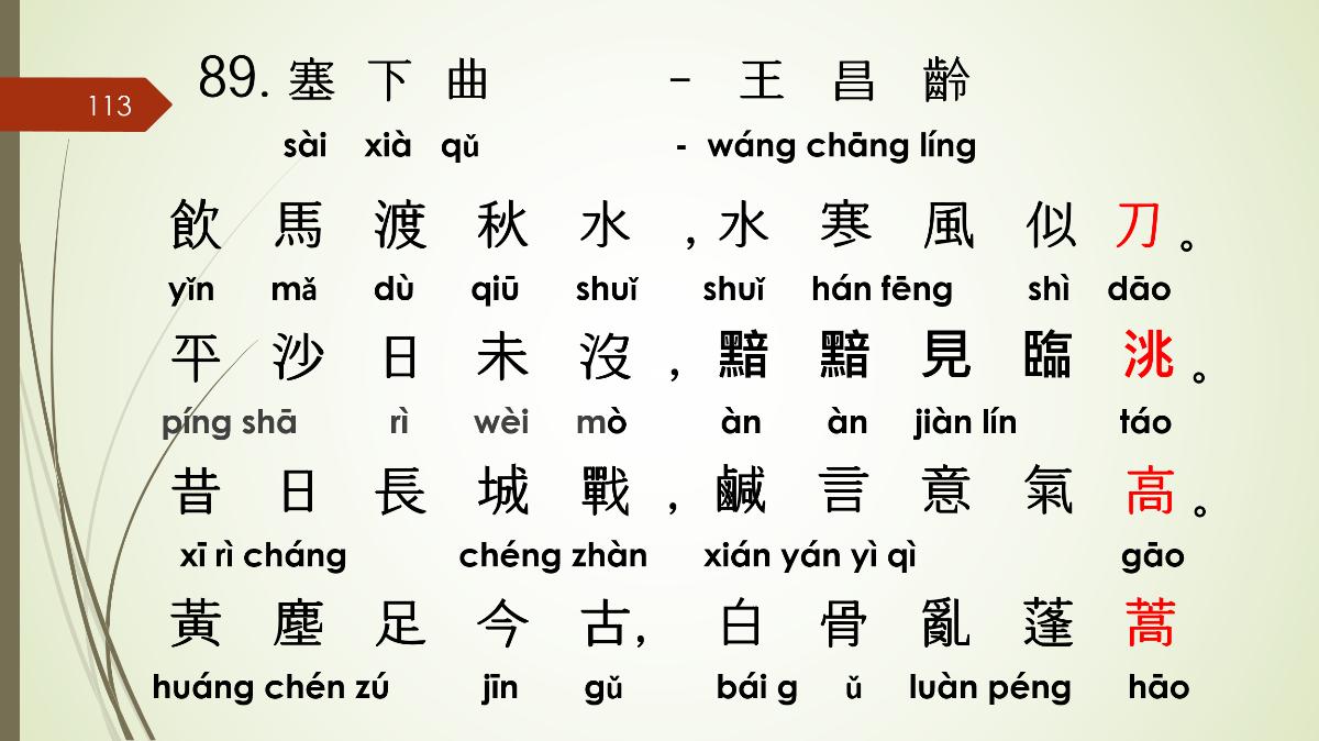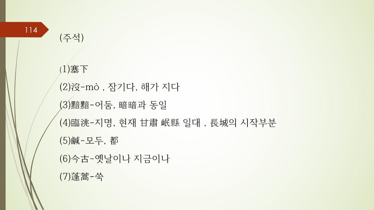 1. 당시제목: 새하곡 2. 작자: 왕창령(王昌齡, 698~756)