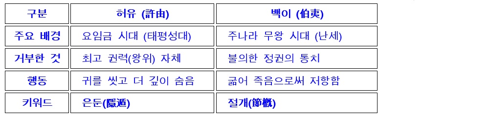 💡 허유와 백이의 공통점과 차이점