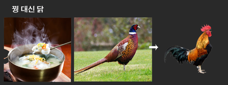 설날 떡국에 맛있는 꿩고기가 없어 대신 닭고기를 넣을 때 "꿩 대신 닭"