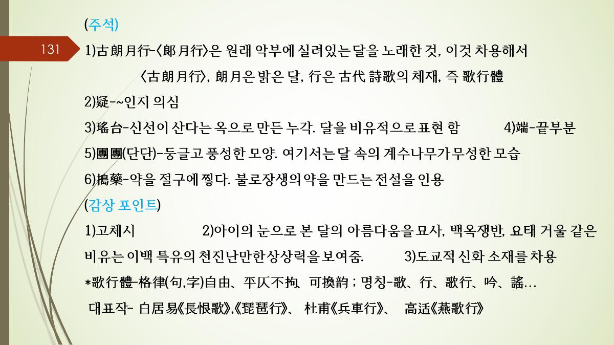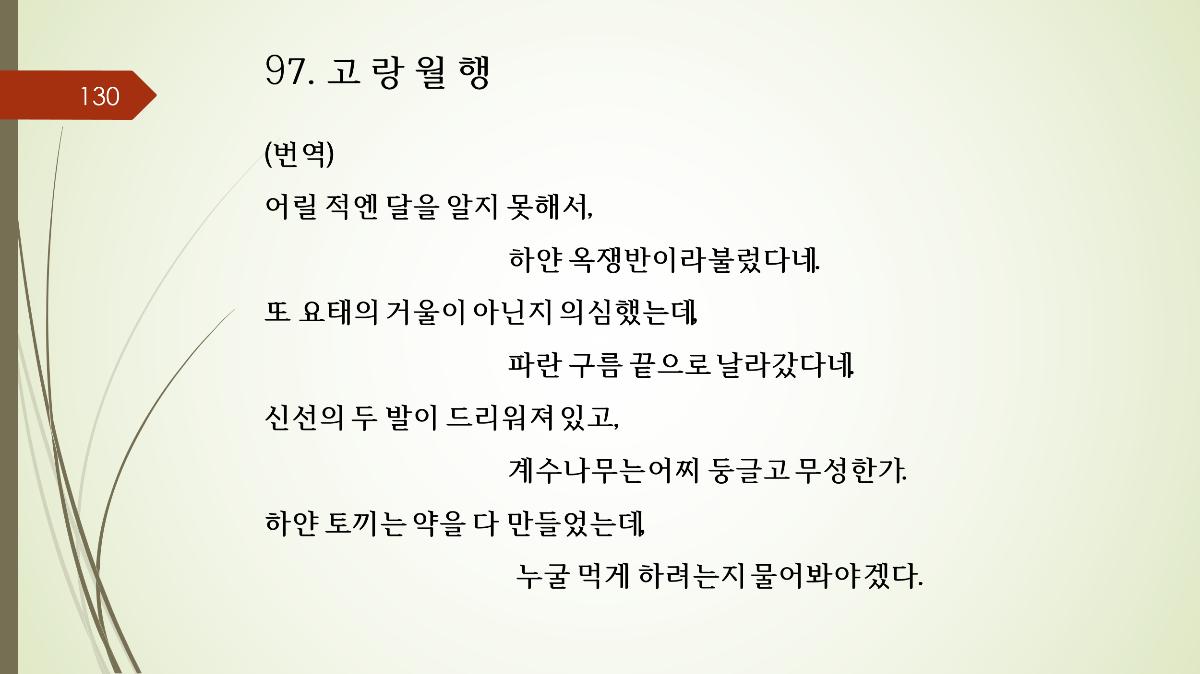 1. 당시제목: 고랑월행 2. 작자: 이백(李白, 701~762)