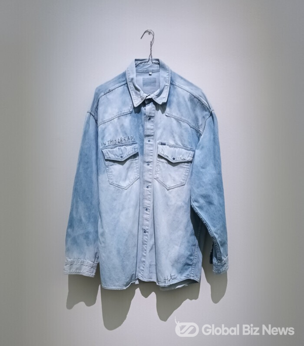 첫 전시장에 들어서니 사람이 전혀 움직이지 않고 벽에 있는 옷이 한 벌 걸려있는 작품 ‘자화상’(1987)을 바라보며 작은 안내문 글씨를 읽으려고 앞으로 나아가지를 못했다. 한참 서서 오래 기다리다 그냥 지나쳤다. 그 작품은 남자 데님 셔츠에 이름을 자수로 새긴 것으로 작가는 자신의 길을 찾으려고 물으며 고민했던 청년 허스트를 옷으로 표현했다.