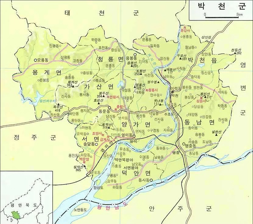 ▶ 박천군(博郡) 지도 (사진 출처: 나무위키)