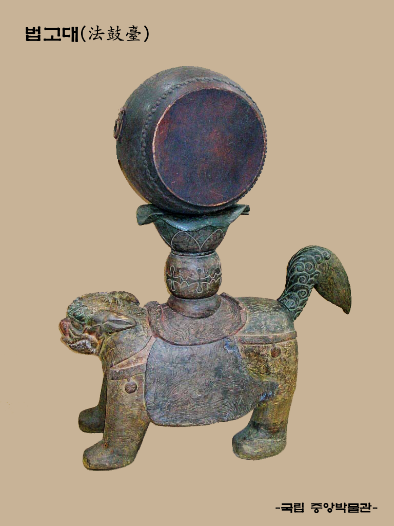 • 북을 올려놓는 곳으로 대좌로 쓰인 동물의 안장 윗부분부터 시작된다. • 경주 불국사 범영루의 법고대(거북형), 국립 중앙박물관 소장 법고대(해태형), 흥국사 법고대(사자형) 등이 대표적이다.
