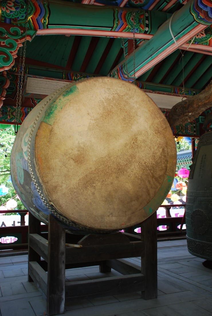 홍고(弘鼓.법을 전하는 북)라고도 하고, 북소리가 세간에 널리 울려 퍼지듯 불법으로 짐승의 마음을 울려 깨우며, 아침·저녁 예불 시간을 알리거나 불교의식을 거행할 때 사용하는 북(鼓)입니다.