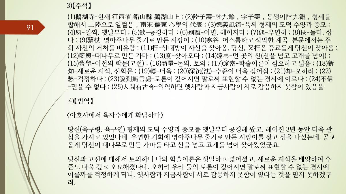《論語》〈雍也〉「知者樂水,仁者樂山」 지혜로운 자는 물을 좋아하고, 인자한 자는 산을 좋아한다"