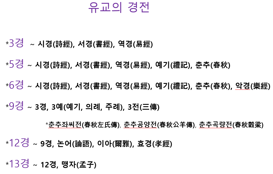 儒家經典의 수는 처음부터 고정되어 있지 않았다. 漢代의 尊儒 정책과 唐宋의 經典 정리운동을 거치면서 점차 확대·정비되었다.
