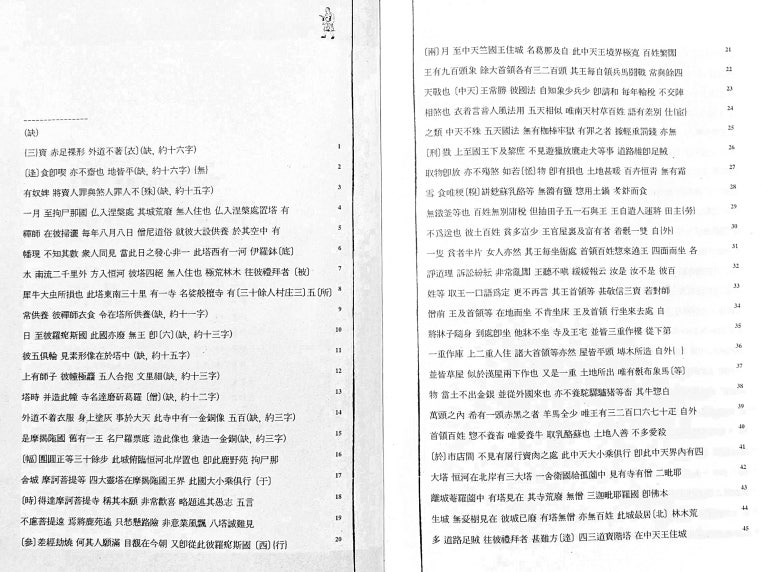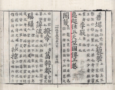 ▼ "왕오천축국전"이 3권(상, 중, 하)이라는 근거는 당나라 승려 혜림(慧琳, 737~820)이 쓴 불교 경전에 나오는 어휘의 음과 뜻을 설명한 불교 용어 사전인 일체경음의(一切經音意)에 나온다.
