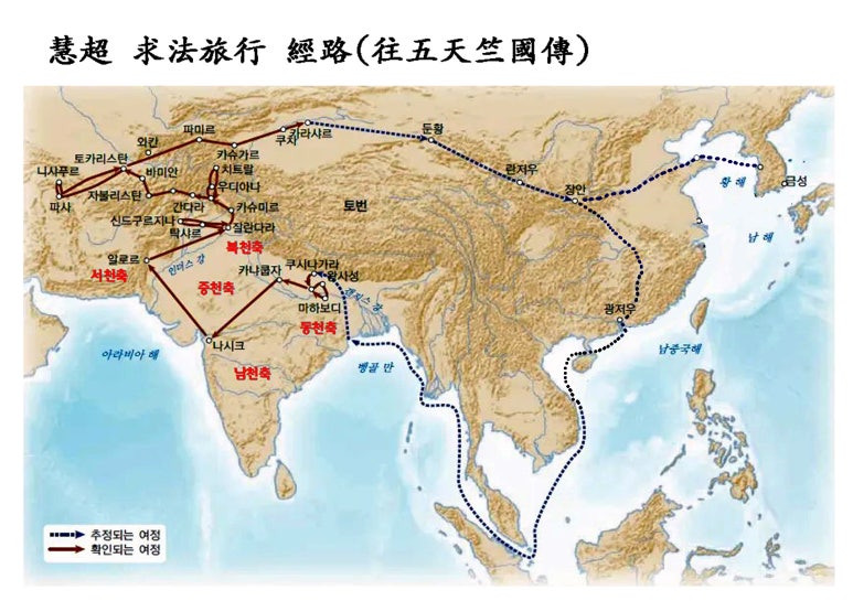 출처 : 실크로드와 둔황(국립중앙박물관), 혜초의 왕오천축국전(정수일), 구글, 네이버, 위키백과,민족문화대백과,불교기록문화아카이브