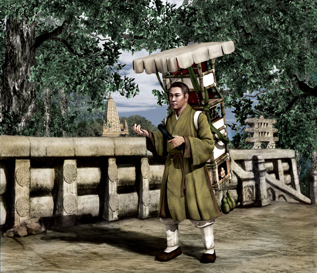 ▼인도에서 구법 여행 중의 혜초 스님(추정 그림)