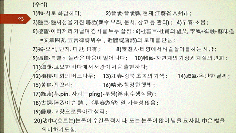 2) 작자 : 두심언(杜審言) 645 년경 - 708 년