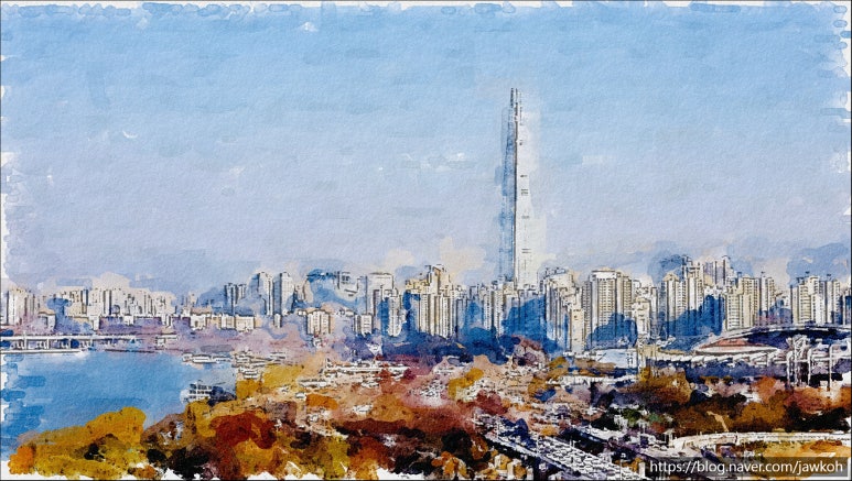 지난달 강남 봉은사를 들른 후 점심 식사를 하고 가까운 곳에 삼성 해맞이 공원이 있다고 하여 다녀왔다. 한강이 시원하게 보이고 우뚝 솟은 롯데 월드타워가 돋보였다.