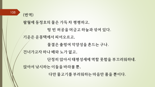 1. 당시제목 : 망동정호증장승상 2. 작자 : 맹호연(孟浩然)( 689~740)