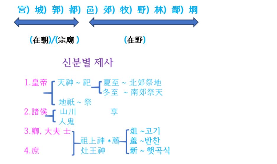 * 이 도표는 고대 중국의 예제(禮制)에서 신분에 따라 누가 어떤 대상에게, 어떤 방식의 제사를 지낼 수 있었는가를 정리한 것이다. 제사는 단순한 종교 행위가 아니라, 우주 질서와 정치·사회 질서를 동시에 반영하는 제도였다.
