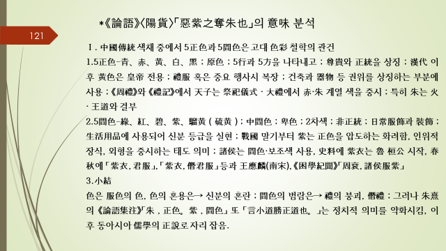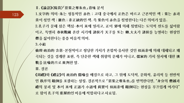 2) 음악, 《論語》〈陽貨〉「惡紫之奪朱也,惡鄭聲之亂雅樂也,惡利口之覆邦家者」