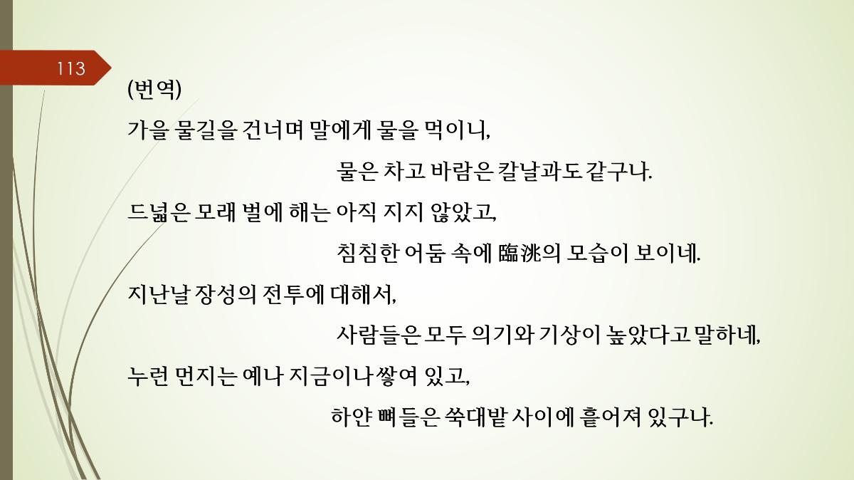 1. 당시제목: 새하곡 2. 작자: 왕창령(王昌齡, 698~756)