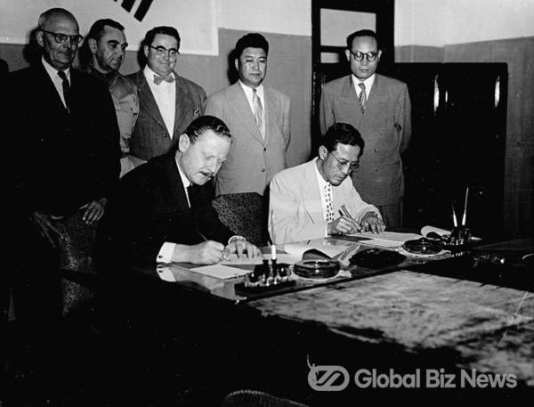 한국 원조 한미협정서 체결(사진:정부기록사진집)
