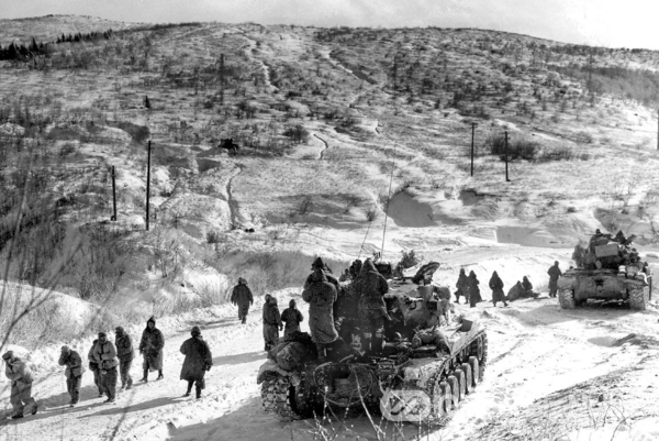 1950년 9월, 유엔군은 주도권을 되찾아 서울을 탈환하고 38선을 넘어 중국 국경으로 북한군을 추격했다. 한국에서 전세가 역전되자, 더글러스 맥아더 장군은 해리 트루먼 대통령에게 중국의 개입 가능성은 거의 없다고 확언하고, 군인들에게 크리스마스에는 귀국할 수 있다고 약속했지만, 중국군은 1950년 10월 19일 국경을 넘어 11월에 파괴적인 공습을 감행하며 공격해 왔다. 딘 헤스 소령은 국경 근처에서 작전을 수행하던 중, 기습 작전을 지휘하여 30분 만에 침공 차량 40대를 파괴했다. 그러나 그것은 정말 공허한 승리였다.