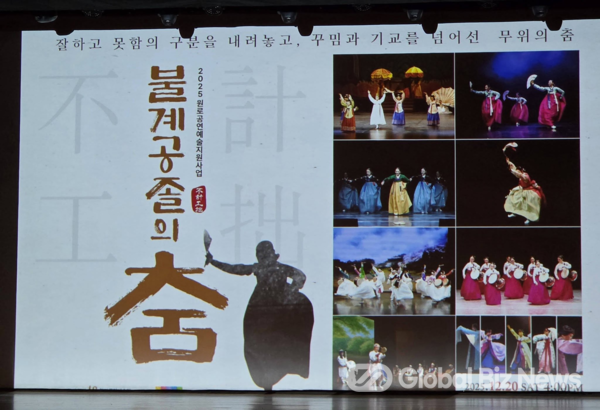 <불계공졸(不計工拙)의 춤> 공연이 2025년 12월 20일 오후 4시 경기도 과천시민회관에서 성황리에 개최되었다. 웅장하고 다채로운 춤 공연에는 전통춤 원로 8분과 제자 50여 명이 함께 출연해 의미가 남달랐다. 춤을 좋아하는 사람들은 오랜만에 춤의 희열(喜悅)을 맛보며 한없이 즐거웠다. 한뫼국악예술단(단장 오은명)은 2025년 4월에 공고한 경기문화재단 2차 원로공연예술지원사업을 보고 서류를 제출해 엄격한 심사를 거쳐 900만 원을 지원받았다.