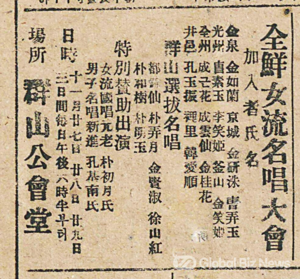 조선여류명창대회(1947년 11월 28일) 광고 (사진:군산신문)