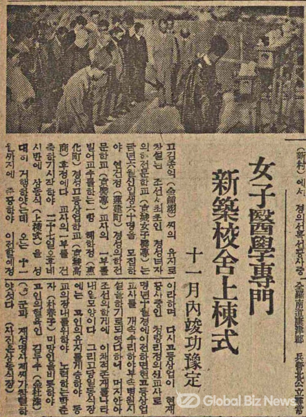 경성여자의학전문학교 신축교사 상량식(사진:매일신보, 1938.9.28.)