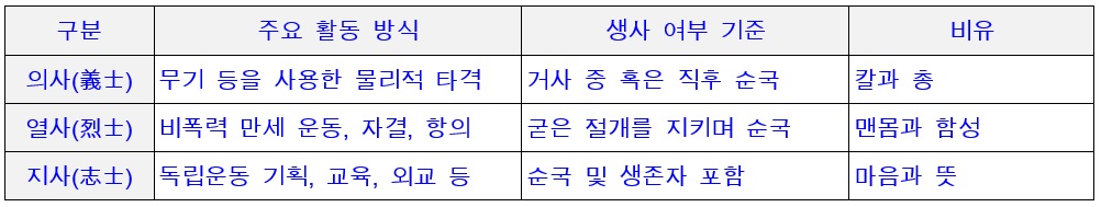 * 의사 열사 지사의 구분 (중국과 한국은 의사 열사가 반대이다)