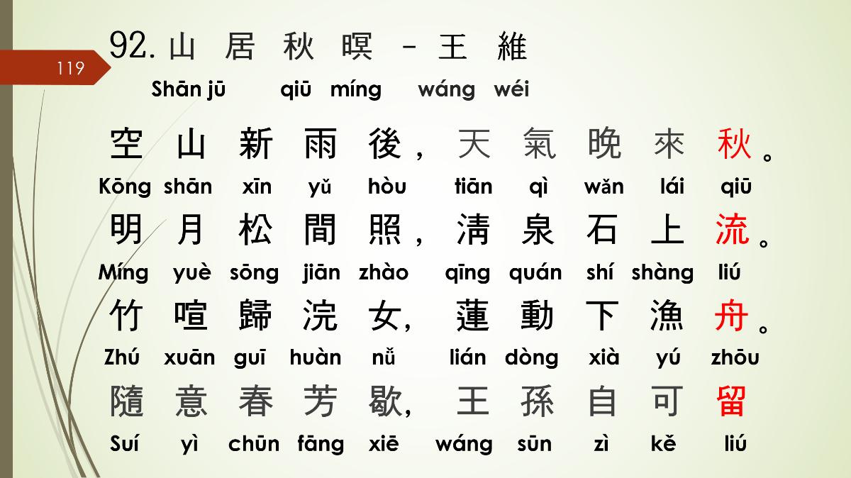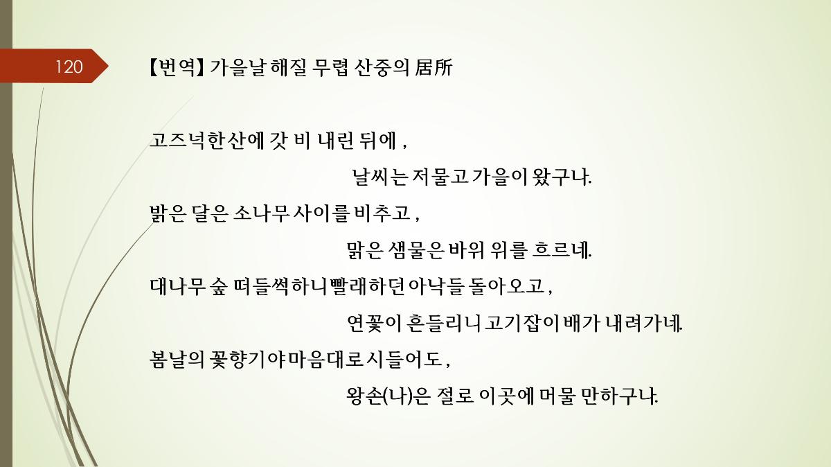 1. 당시제목: 산거추명 2. 작자: 왕유(王維, 699~761)