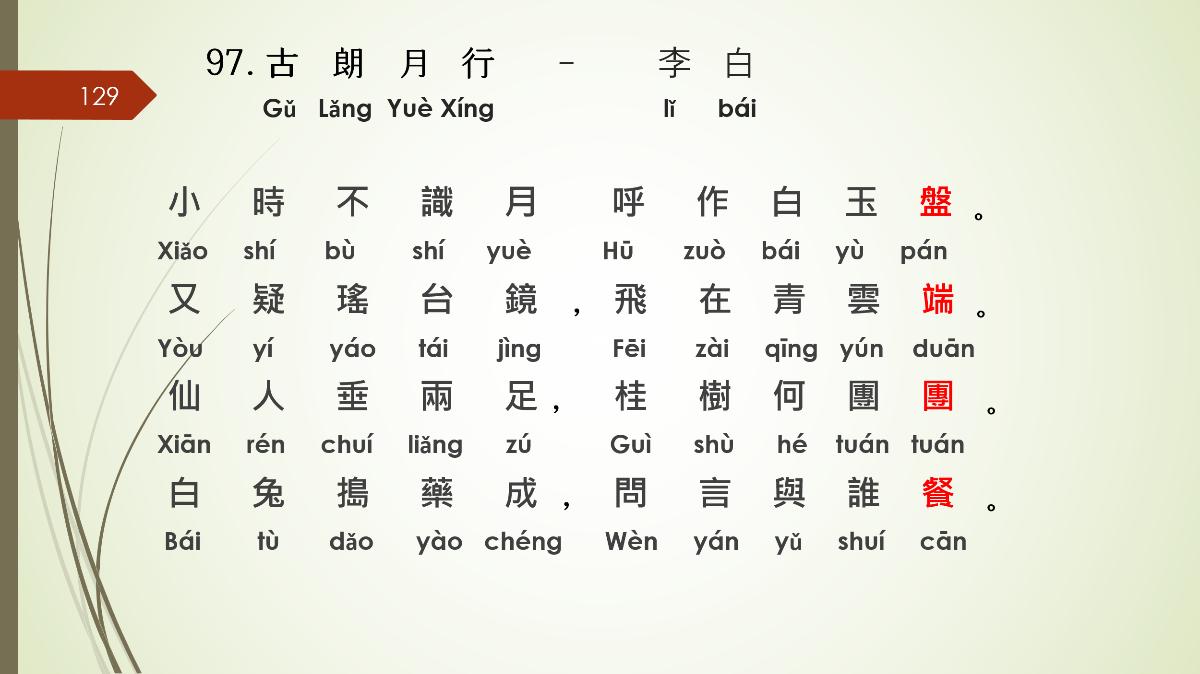 1. 당시제목: 고랑월행 2. 작자: 이백(李白, 701~762)