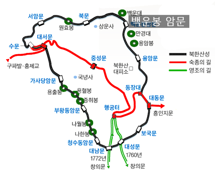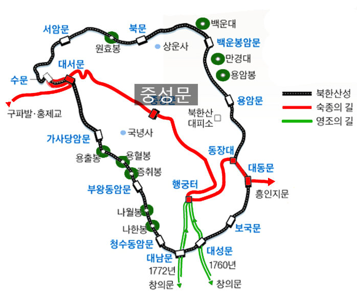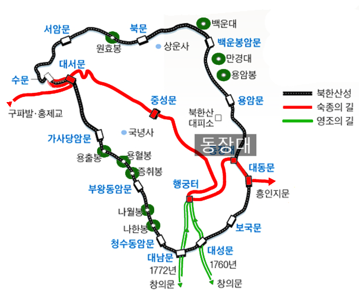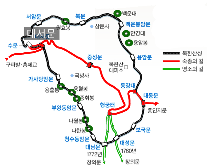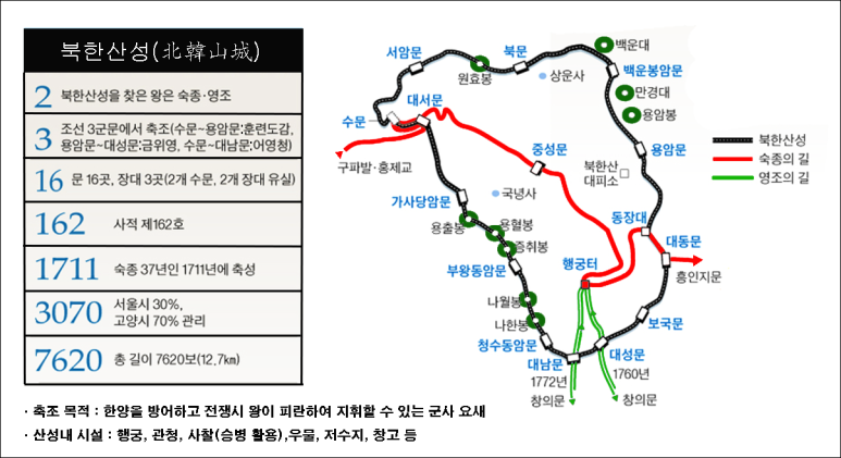 조선의 숙종 임금은 병자호란 후 처음으로 외침에 대비하고자 산성을 축조(탕춘대성: 한양도성과 북한산성을 연결하는 성곽) 하거나 개축하였습니다.