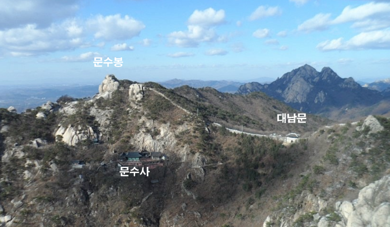 • 문수봉은 북한산 의상능선에 있는 봉우리로 그 밑에 있는 문수사에서 그 이름이 유래한 것으로 추정된다. • 이와 비슷한 각도에서 찍은 사진에는 시간이 흐른 현재도 정상부의 바위 모습이 그대로인 것을 확인할 수 있다.