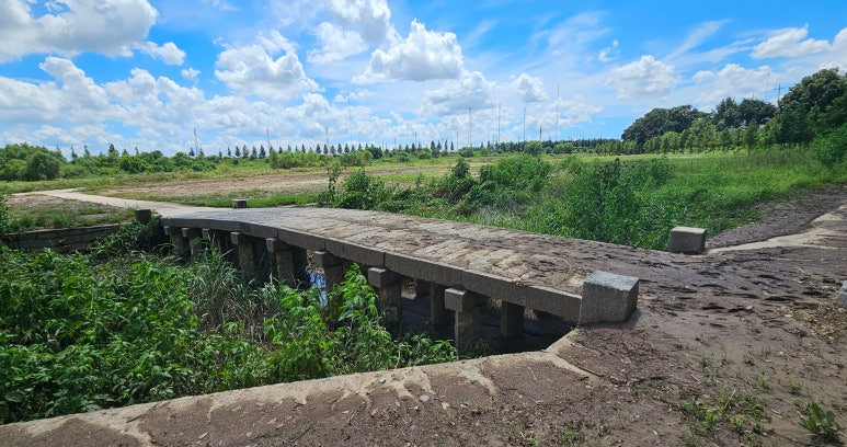 이 다리는 일제 강점기에 창릉천 위에 놓인 돌다리로 이번 폭우에 끄떡없이 견디고 다리에 흙만 쌓여 있었다.