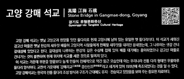 - 경기도 고양시 덕양구 강매동에 있으며 고양군과 한양을 잇던 돌다리